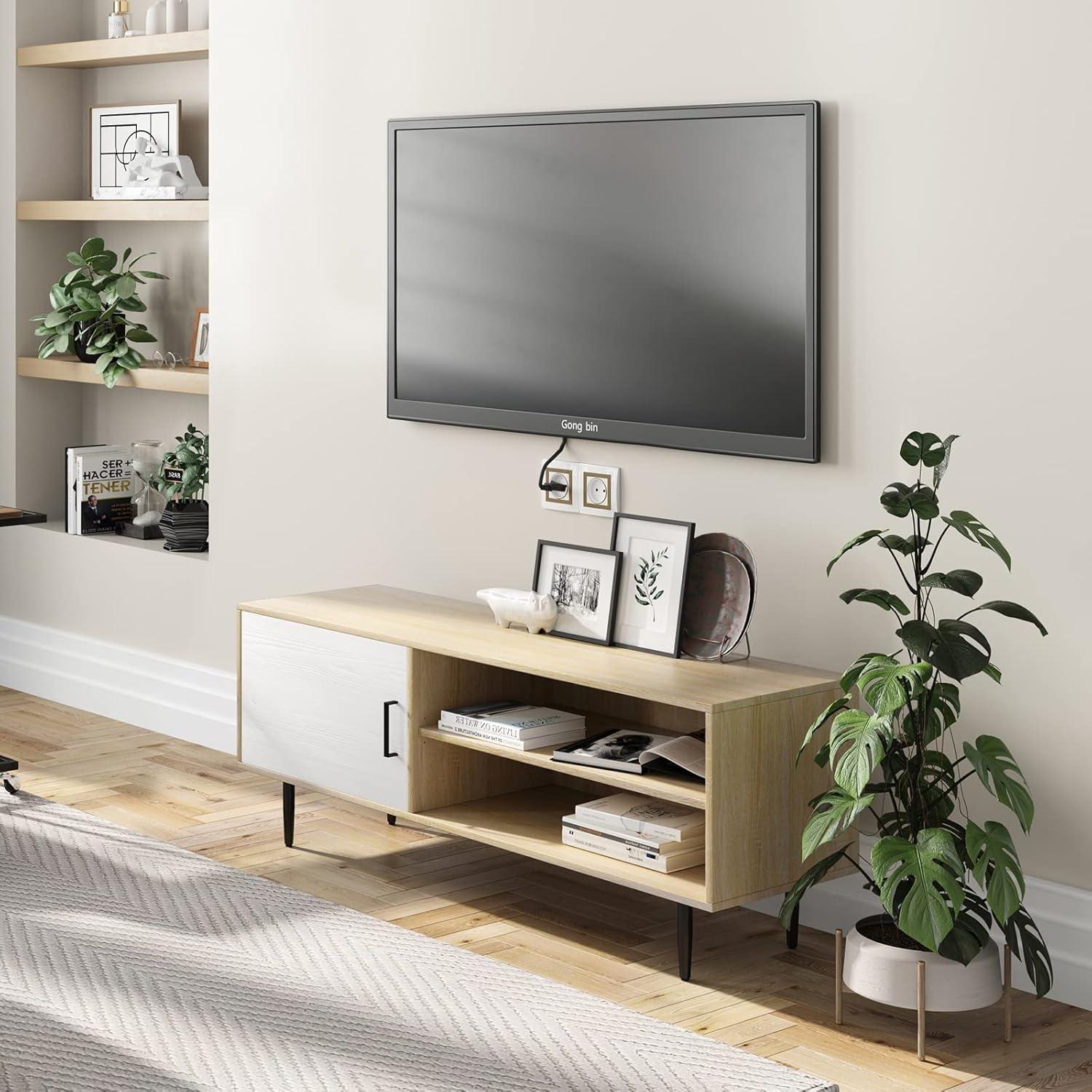 DURABLE MATERIAL: Top surface supports up to 132 lbs. Made of high-grade chipboard and edges sealed with PVC, the small TV stand is waterproof and highly resistant to wear, scratch, and corrosion.