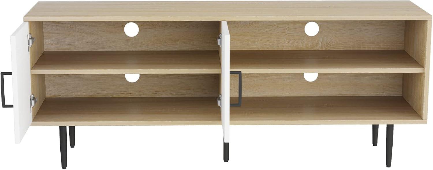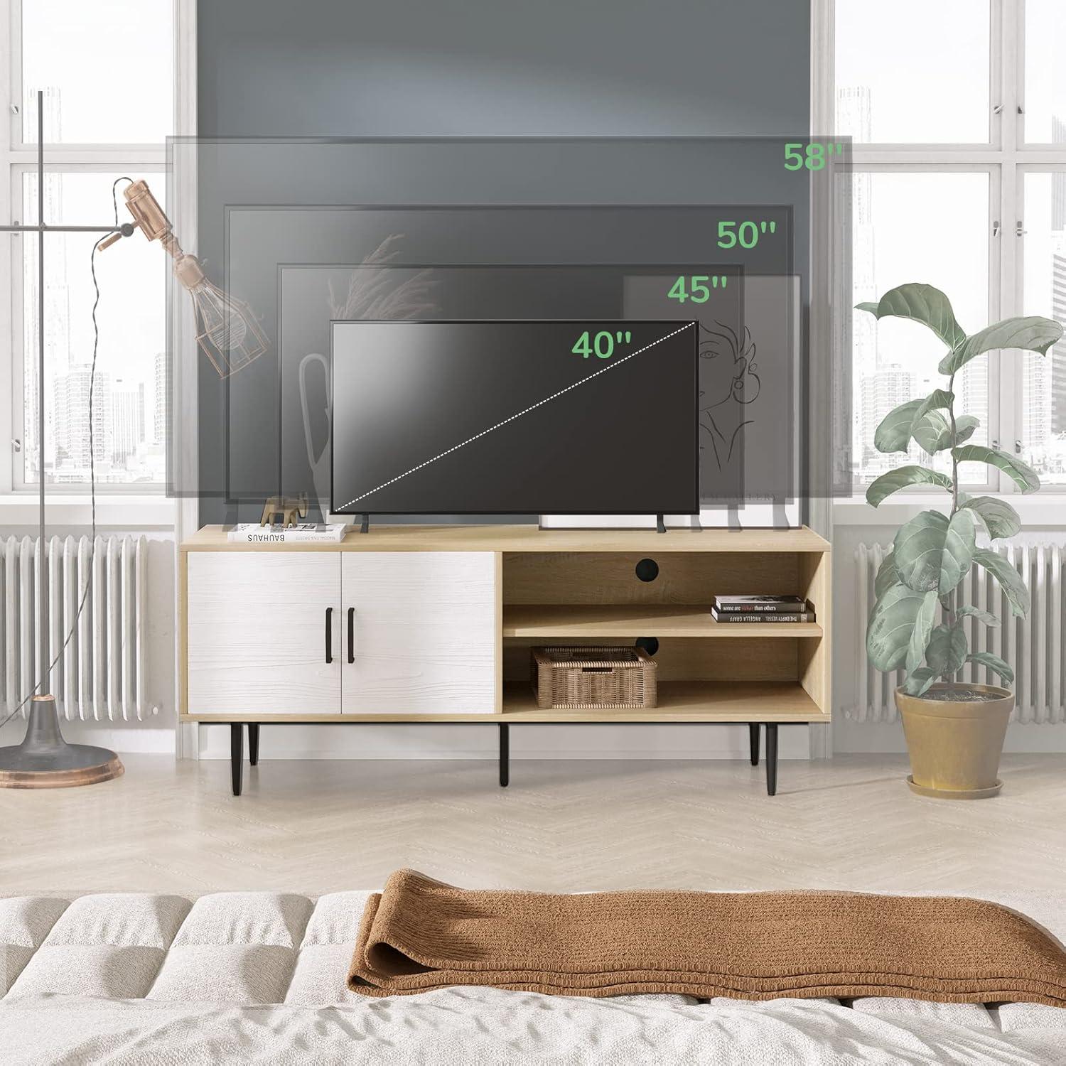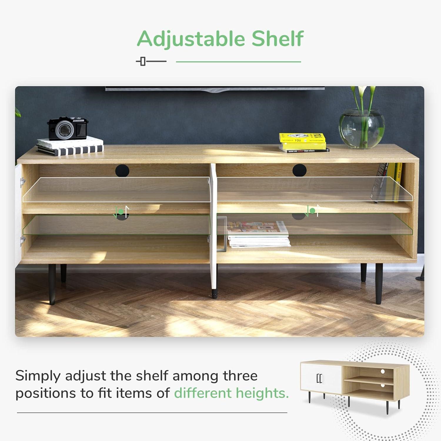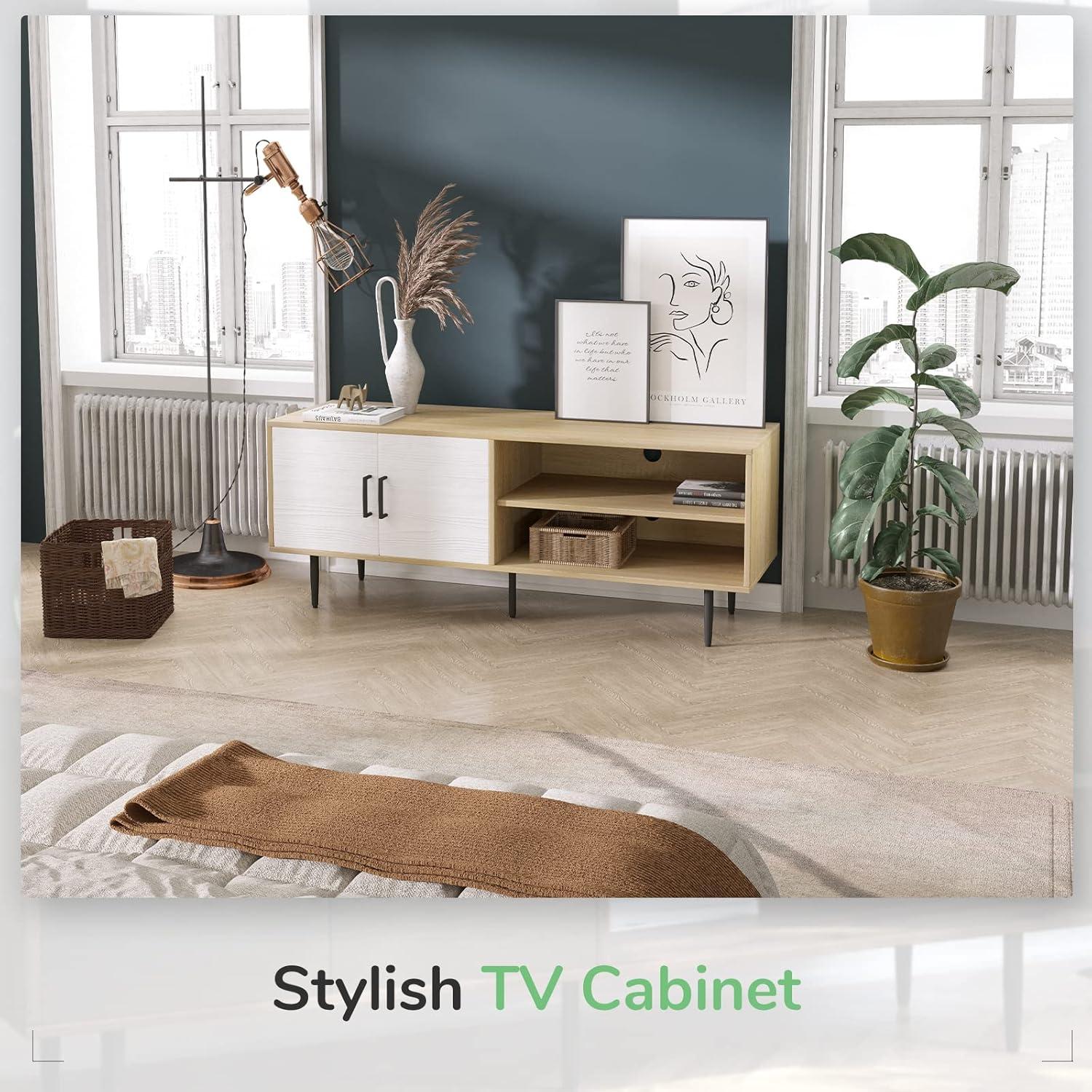 FARMHOUSE CLASSIC DESGIN: Mid century modern TV stand with a touch of farmhouse style creates an atmosphere of relaxed elegance.