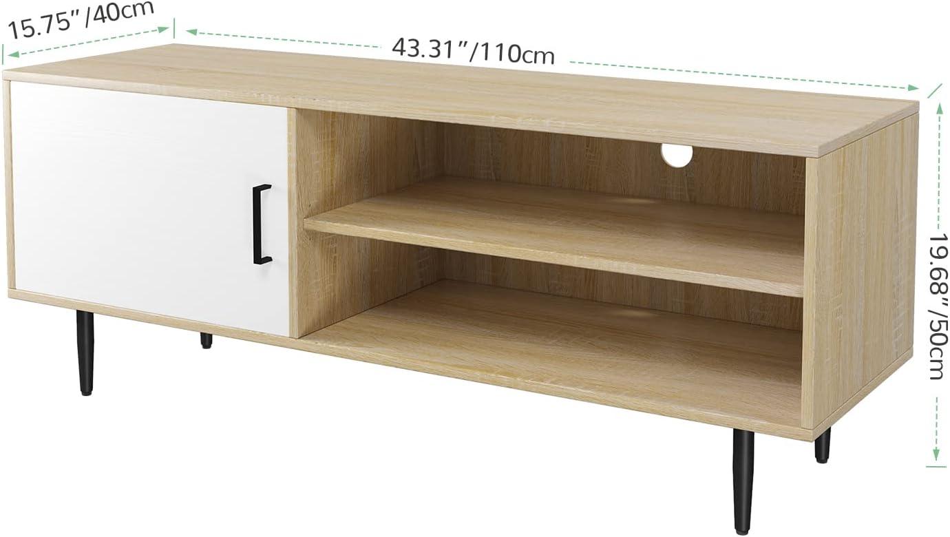 DIMENSIONS: Overall dimension: 19.68” H × 15.75” W × 43.31” L. This entertainment center supports TVs up to 50”.