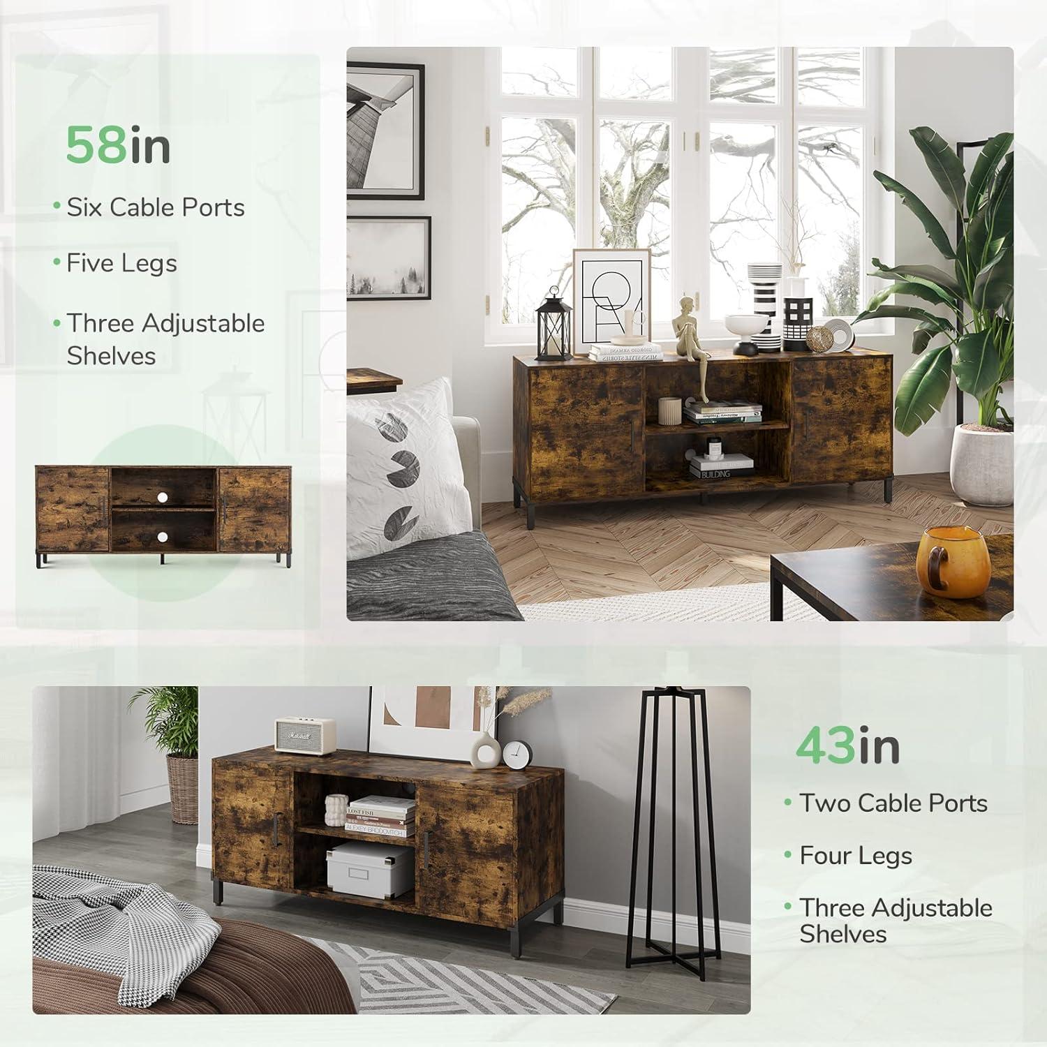 【LARGE STORAGE SPACE】Three adjustable shelves hold your electronics and media accessories. Two enclosed cabinets provide enough room to stow away extras for a neat and organized space. Six cord management ports keep cables tidy.