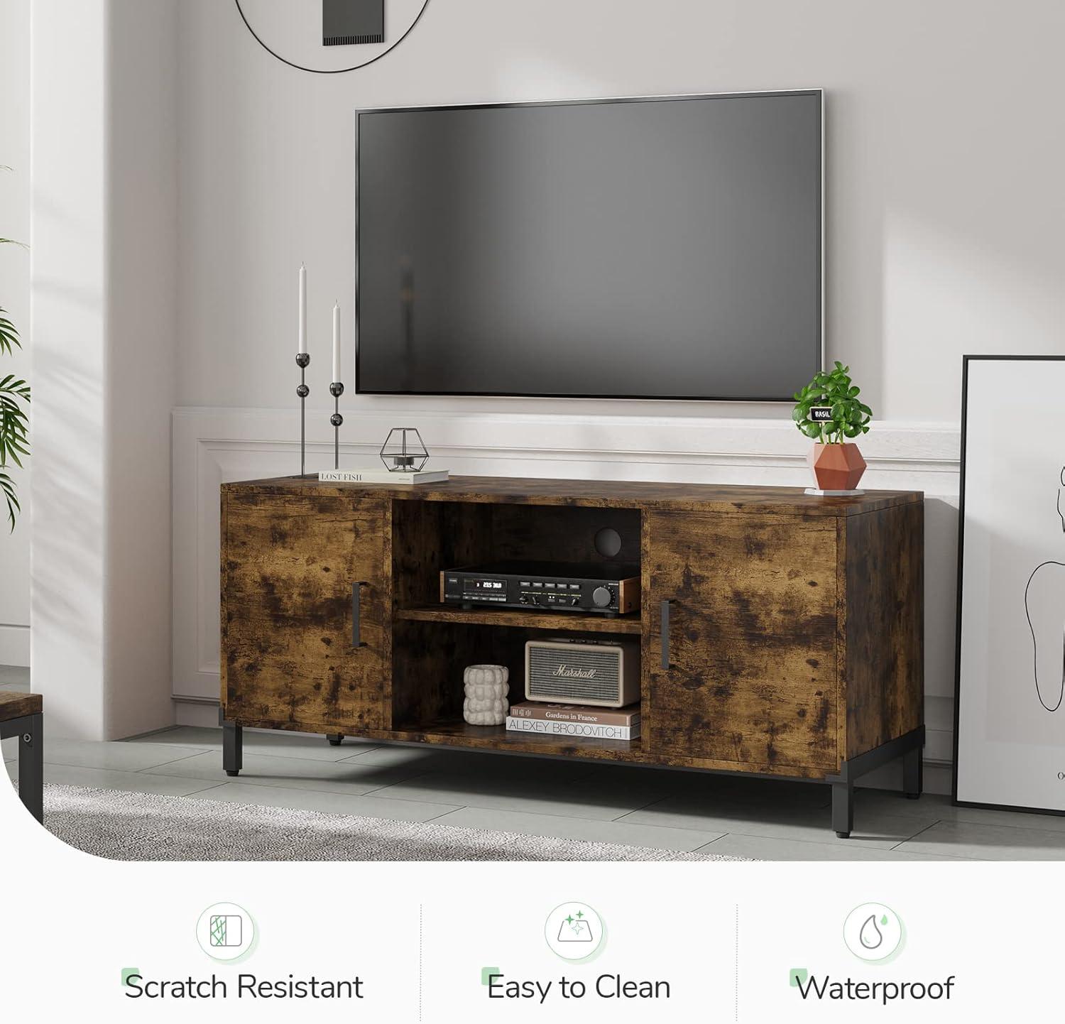 【DURABLE MATERIAL】Top surface supports up to 176 lbs. Made of high-grade chipboard and edges sealed with PVC, TV console furniture is waterproof, and highly resistant to wear, scratch, and corrosion.