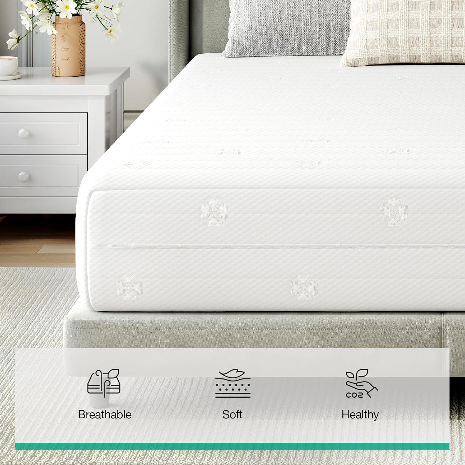 MATTRESS IN A BOX & FITS FOR MOST BASES AND FRAMES – The 10 inch twin size mattresses measure 75inch L x 39inch W x 10inch H,which are rolled and compressed in a box. Setting them up at home is an easy task. They are compatible with most of bed frames and can be used without a spring box. Unseal the mattress and let it inflate for about 72 hours to enable full expansion.
