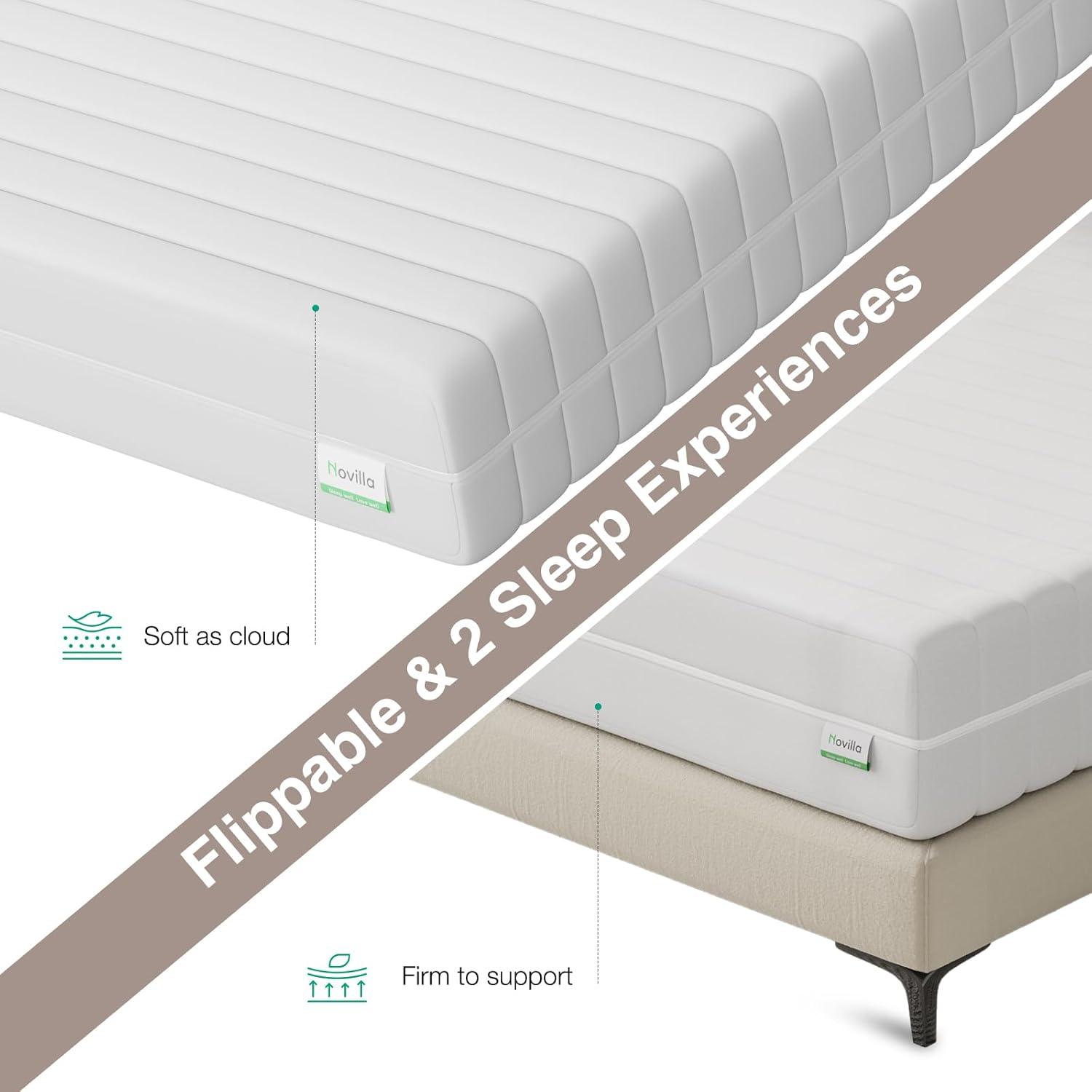 MOTION ISOLATION & BALANCE SUPPORT – The Novilla 10 inch twin mattress features an individual pocket coils spring system that keeps isolating motions from other people or pets sleeping next to you. It balances your body weight, keeps spinal health, provides support and relieves pains. Whether you are a side sleeper, back sleeper or a stomach sleeper, this mattres always gives you a more quiet and deep sleep experience.
