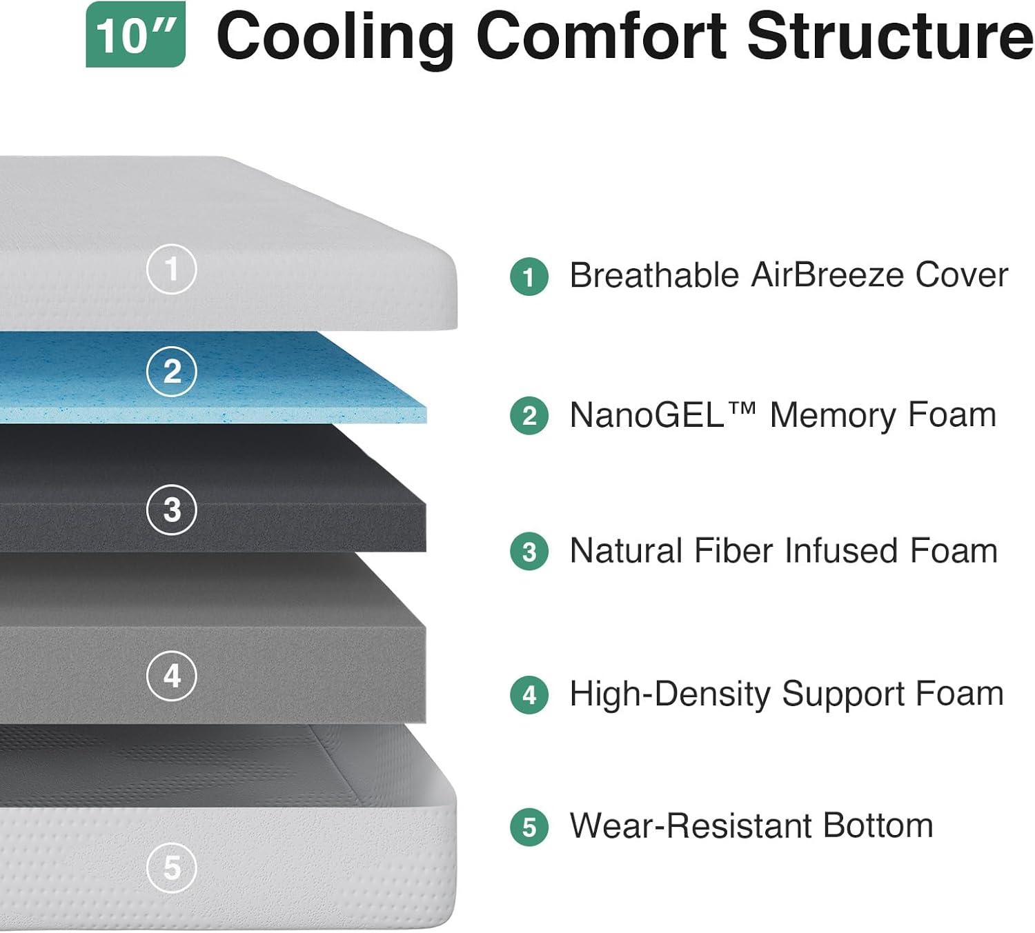 Healthy Sleep – Novilla gel memory foam mattress is quilted with a breathable knitted fabric, offering a soft and luxurious feel. All foams in the Novilla mattress are CertiPUR-US certified, and the mattress cover is OEKO-TEX certified, ensuring the absence of harmful substances. This provides a safe and healthy sleep environment for your family. Additionally, it comes with a 10-year protection, ensuring a decade of worry-free.