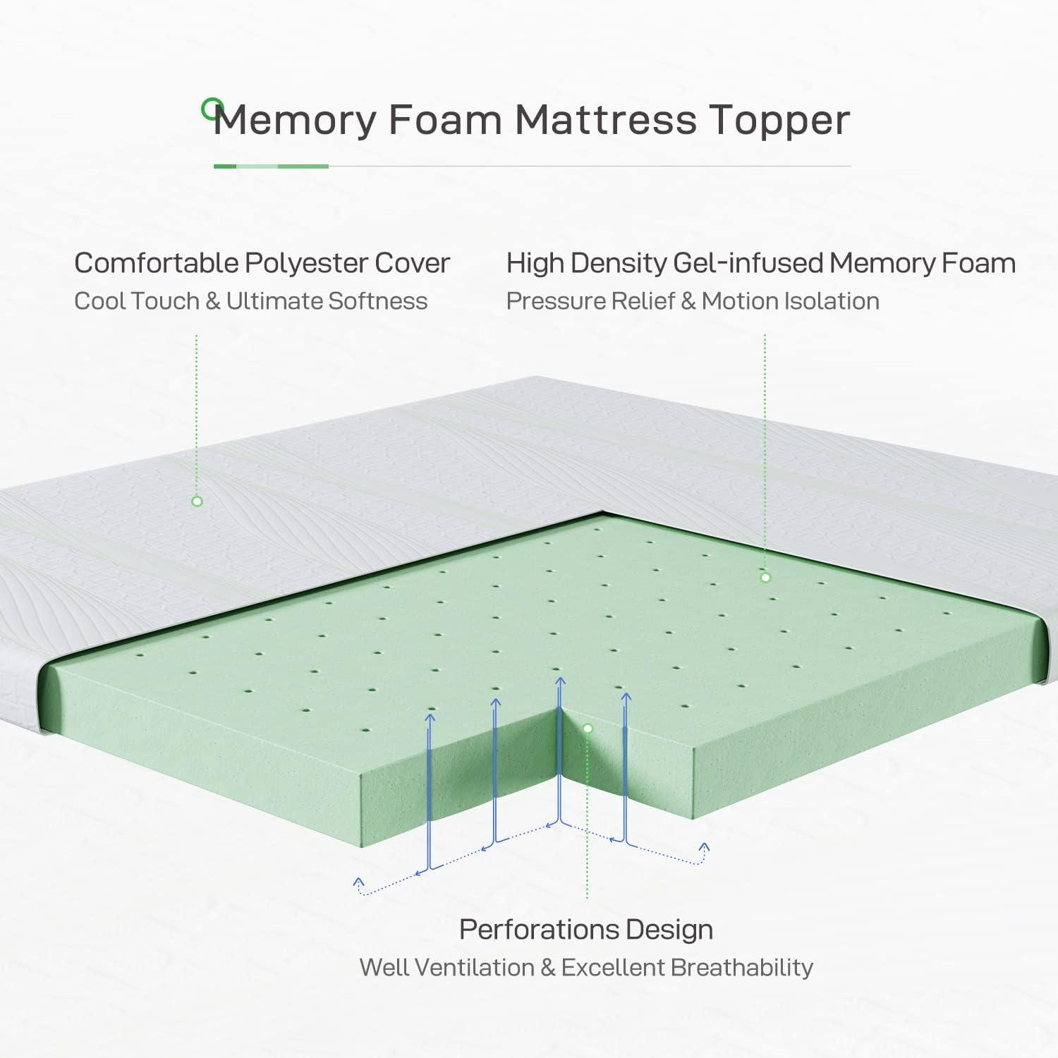 Non-Slip Fit & Easy Care: Elastic straps and deep pockets securely fit mattresses from 8–21”, offering a stable surface that won’t shift. Both the foam topper and cover are machine washable—simply toss in cold water and tumble dry on low for effortless upkeep.