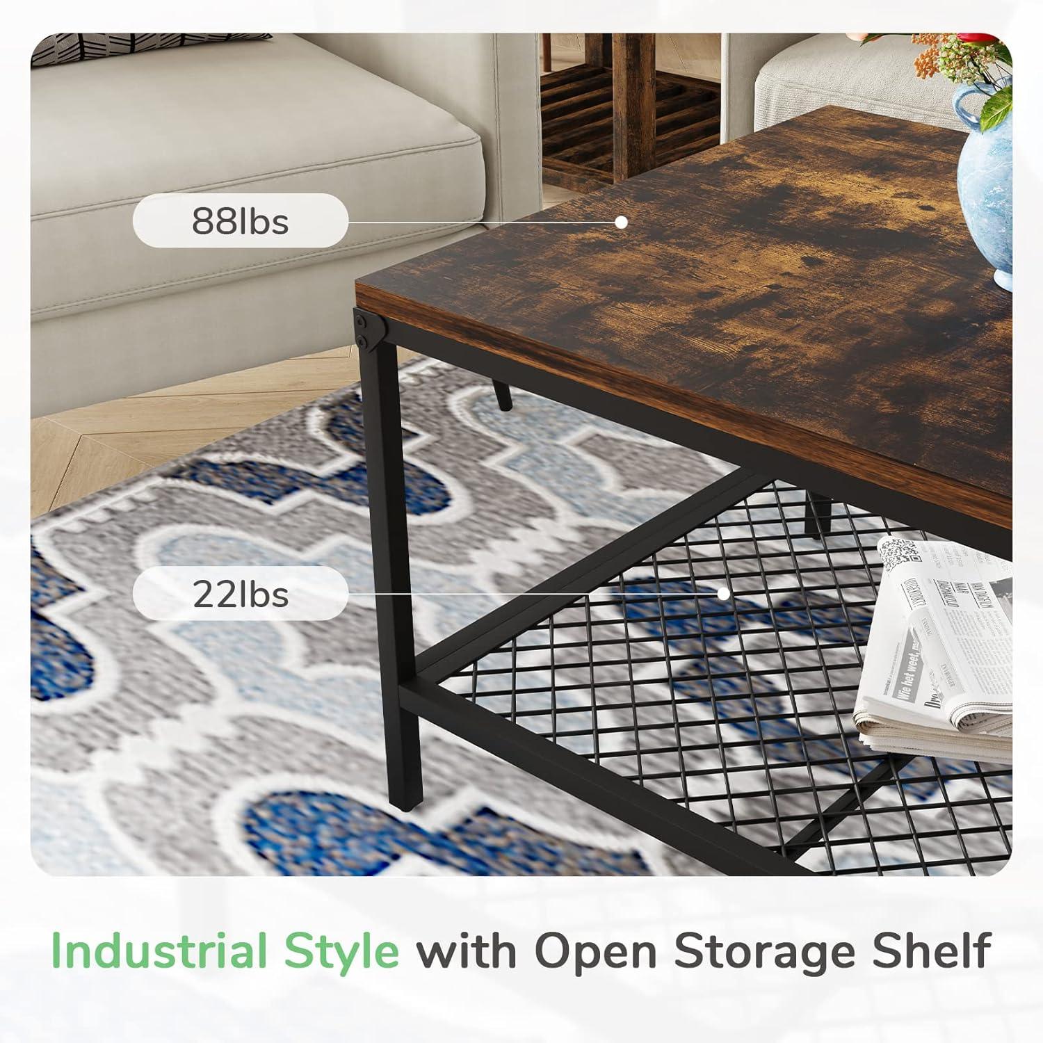Novilla Wood Coffee Table with Storage Shelf Farmhouse Living Room Table Tea Dining Table,Easy Assembly,43 Inch, Walnut(Coffee)