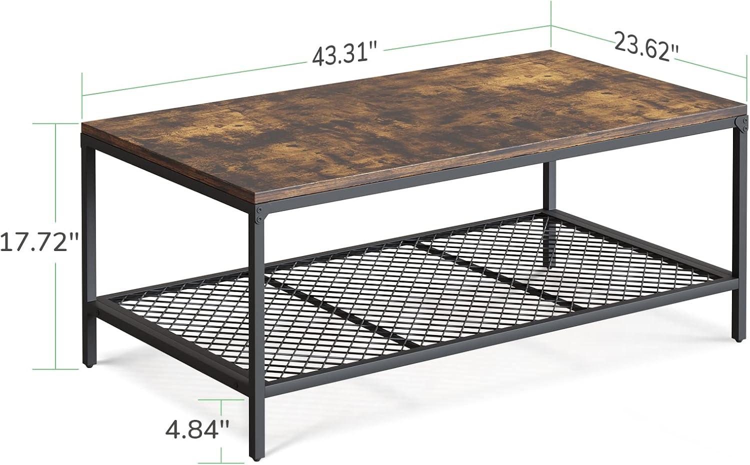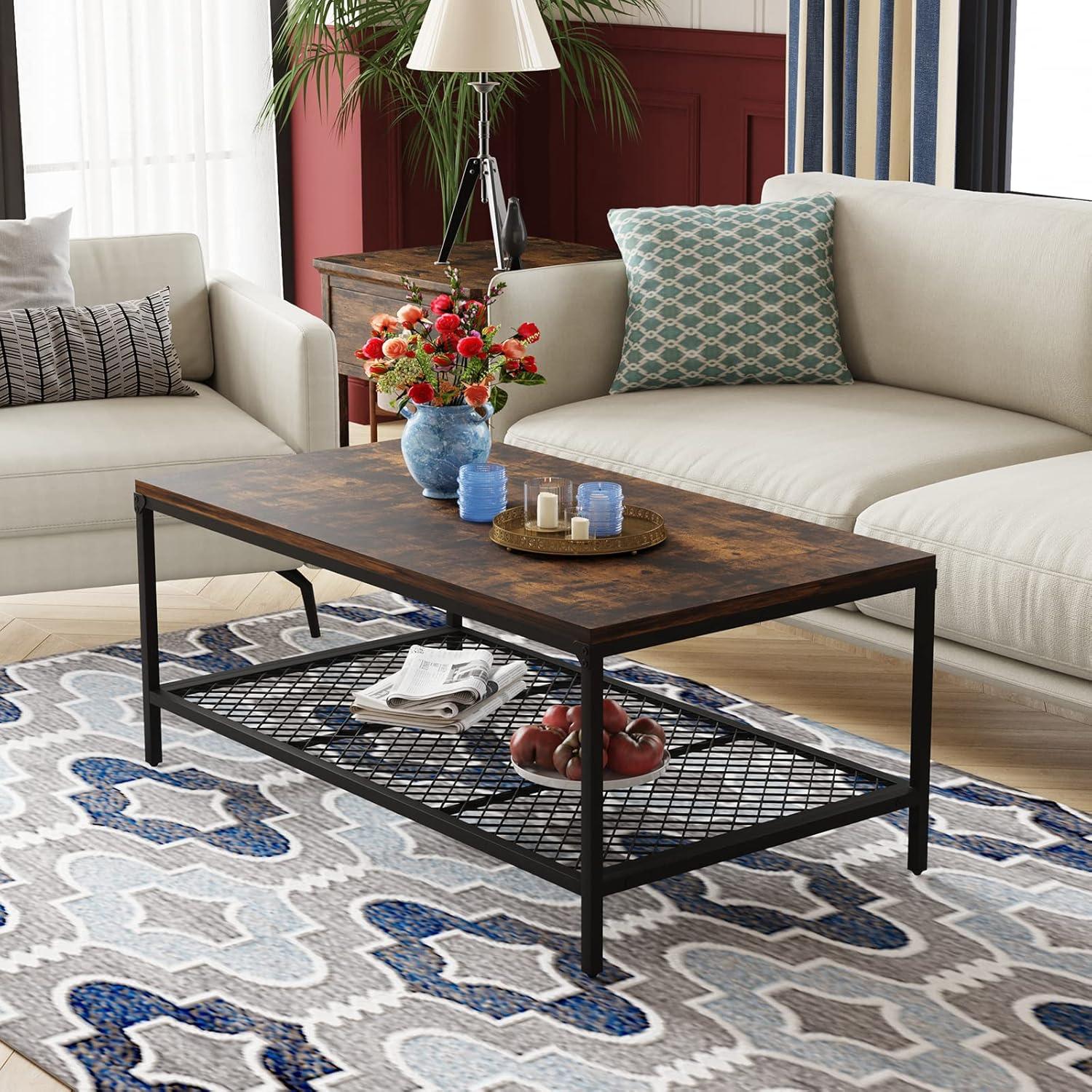Novilla Wood Coffee Table with Storage Shelf Farmhouse Living Room Table Tea Dining Table,Easy Assembly,43 Inch, Walnut(Brown)